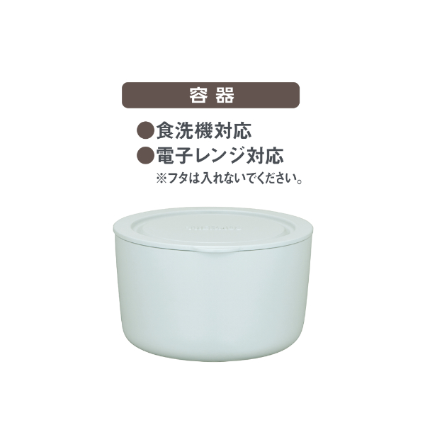 スープとの組み合わせが楽しめる容器付きです。汁漏れがしにくい蓋構造なので安心です。食洗機対応なのでお手入れも簡単です。また、蓋を外せば電子レンジも使用可能です。