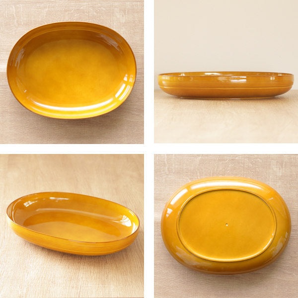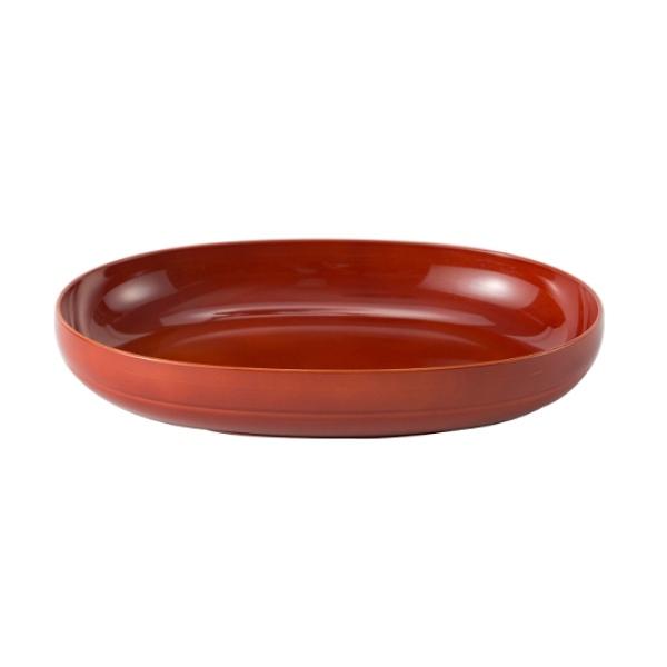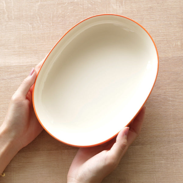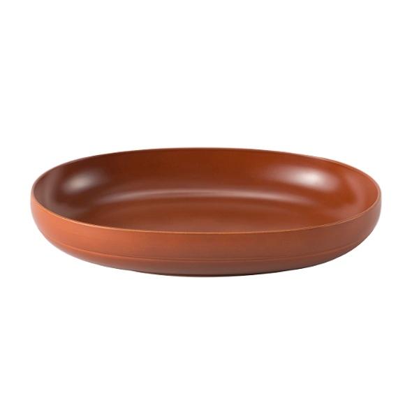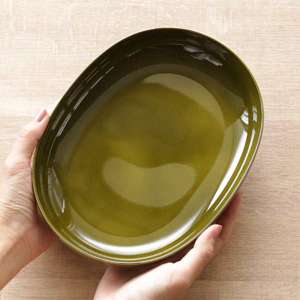 食卓をすっきり見せてくれるオーバル型のプレートです。パスタやカレー、オムライスなどのメイン料理にちょうどいいサイズです。リムがしっかりと立ち上がっているので、汁気のあるお料理も安心して盛りつけることができます。同じシリーズの椀と組み合わせて、ワンプレート風にするのもおすすめです。