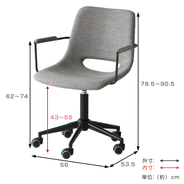 | サイズ | 約 幅56×奥行53.5×高さ90.5(cm) 昇降機能高さ:約78.5〜90.5(cm) 座面高:約43〜55(cm) |