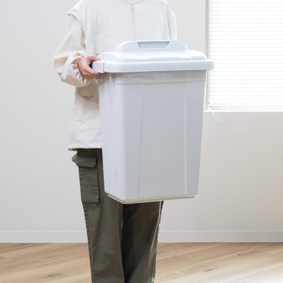 本体は水に強く、軽量で扱いやすいポリプロピレン製なので、屋内外問わずお使いいただけます。ゴミ収集日まで間があっても溜まったゴミをストックできます。投入口が広いのでお菓子のパッケージや2Lのペットボトル、梱包材などの大きいゴミも捨てられます。