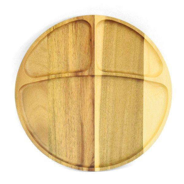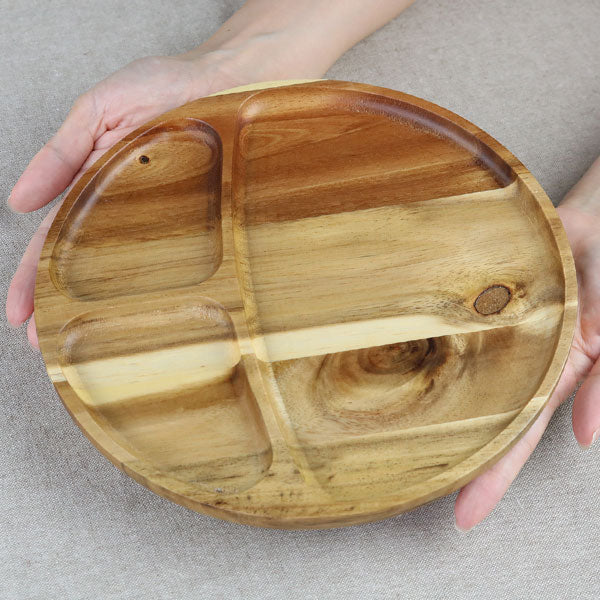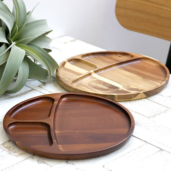 天然木の自然な木目が美しいランチプレートです。仕切り付きで味が混ざることがなく、ワンプレートに盛り付けると洗い物も少なく実用的です。シーンを選ばず料理に馴染み、カフェのような雰囲気を楽しめます。