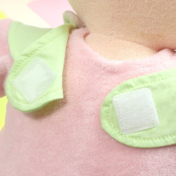 面テープ仕様なので着脱が簡単です。動き回る赤ちゃんにサッとワンタッチで付けることが出来ます。ちょっとしたサイズ調整もしやすいです。