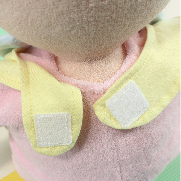 面テープ仕様なので着脱が簡単です。動き回る赤ちゃんにサッとワンタッチで付けることが出来ます。ちょっとしたサイズ調整もしやすいです。