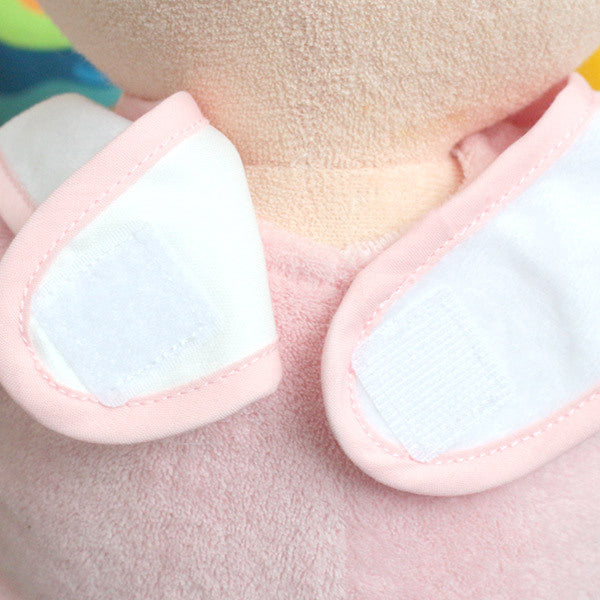 面テープ仕様なので着脱が簡単です。動き回る赤ちゃんにサッとワンタッチで付けることが出来ます。ちょっとしたサイズ調整もしやすいです。