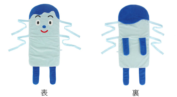 コッシーのイスカバーです。お子様用のイスにイスカバーをセットし、両端のひもを結ぶと取付け完了です。お子様もコッシーと一緒ならより楽しく座れそうです。