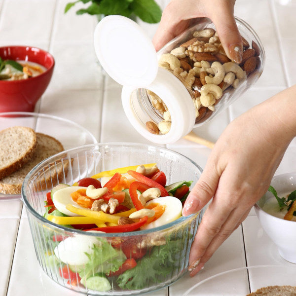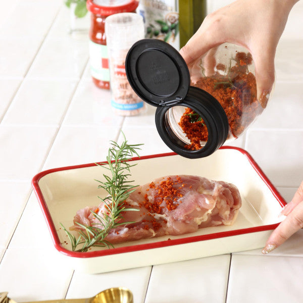 フタの開け閉めが片手で簡単にできる便利なガラスジャーです。手がふさがりがちな料理中にも簡単に片手で取り出せるので、お料理の効率アップにも繋がります。ガバっと口が大きく開くので中身も取り出しやすいです。