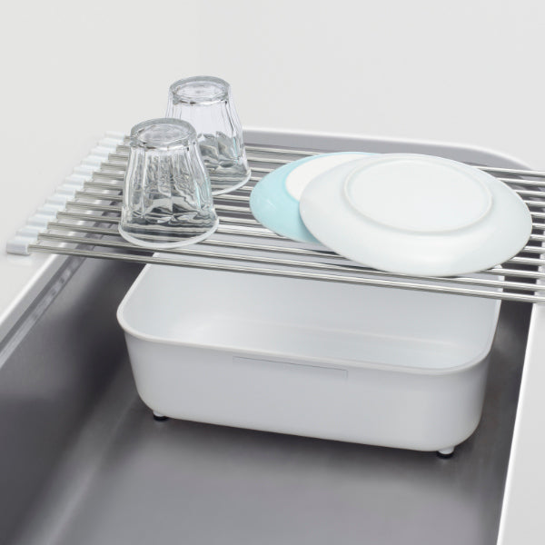 ちょこっと洗いにちょうど良い、場所を選ばないコンパクトなサイズでシンクを広くお使いいただける洗い桶です。凸凹の少ないシンプルな形状なので、お手入れもラクラク。また片側のオーバーフローのスリットから自然に水が抜けるので、箸や野菜などが水と一緒に流れ出るのを防いでくれます。
