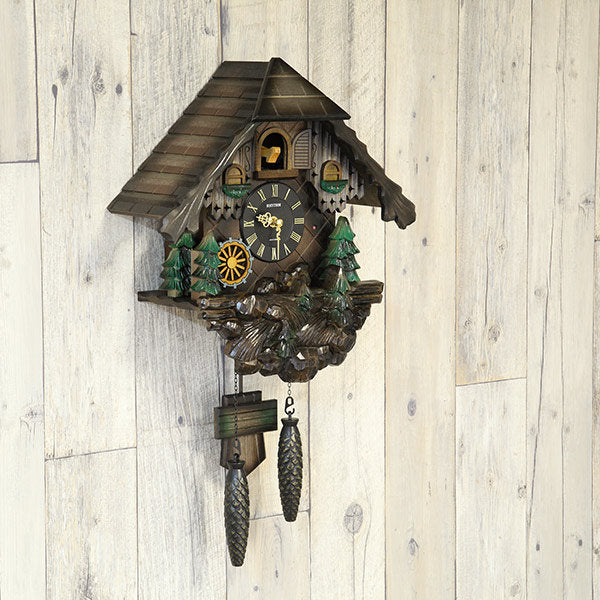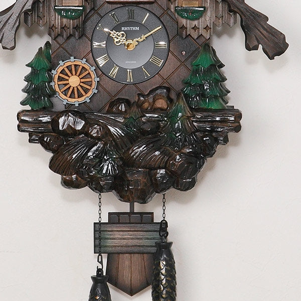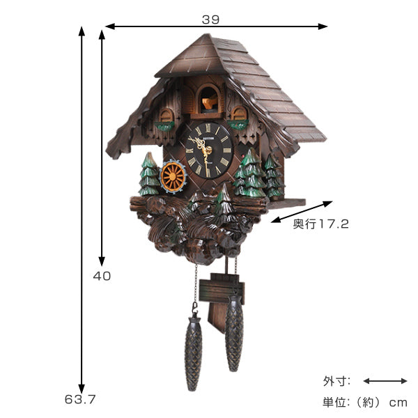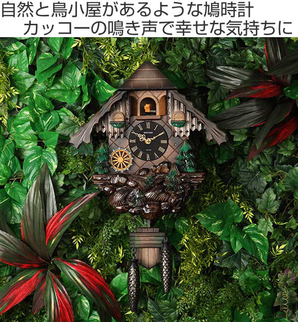森から聞こえてきそうなカッコーの鳴き声は毎正時幸せな気持ちになること間違いありません。ふいご機構から奏でる(ホッホー)の音に合わせメカニカルにカッコーがお辞儀をする姿が一層目を惹きます。