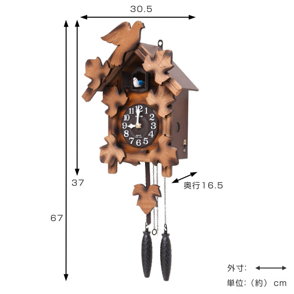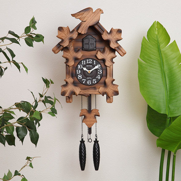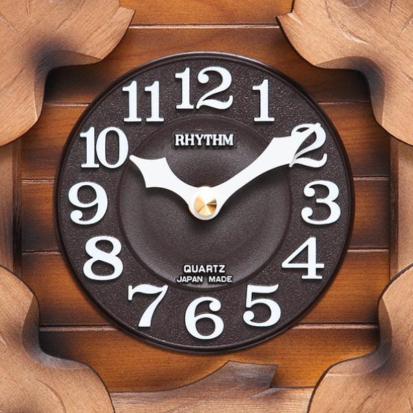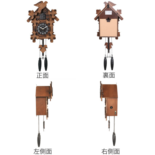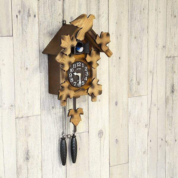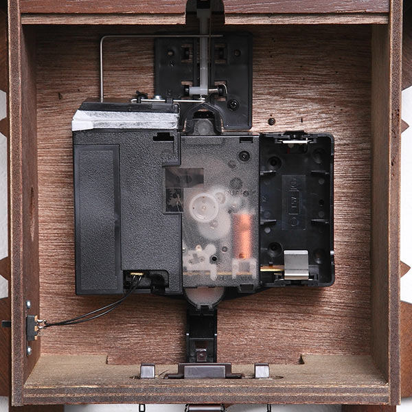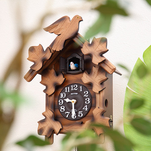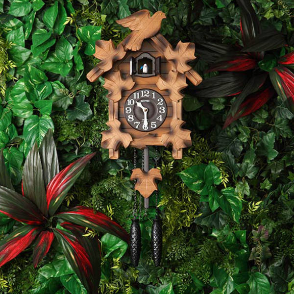 森から聞こえてきそうなカッコーの鳴き声は毎正時幸せな気持ちになること間違いありません。ふいご機構から奏でる(ホッホー)の音に合わせカッコーがお辞儀をする姿が一層目を惹きます。毎正時は時間の数だけ鳴き、30分には1回だけ鳴きます。通常は扉を閉じ、カッコーは見えていません。暗所鳴り止め機能は付いていません。
