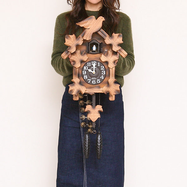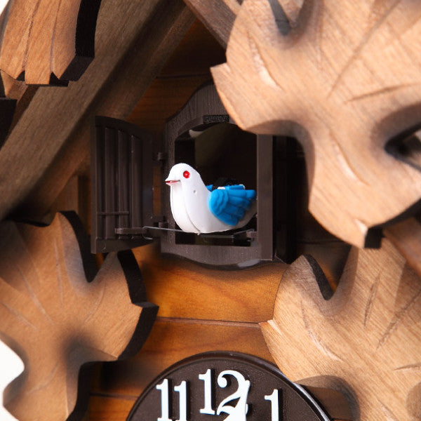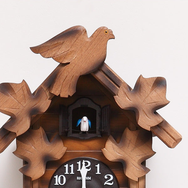 どこか懐かしさを感じる鳩時計です。温かみのある木製ケースは鳥や葉っぱなど細かなところまでこだわって造られており、うっとりしてしまうほど美しくカッコー時計の世界観に思わず引き込まれます。