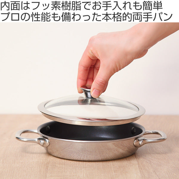 フライパン 両手 15cm IH対応 ガラス蓋付き クィーンパン 中尾アルミ