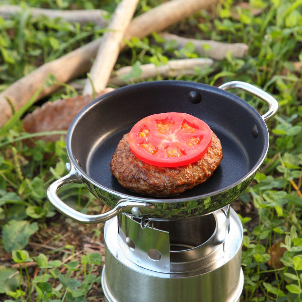 コンパクトサイズなのでアウトドアでも活躍します。アヒージョやハムエッグを作るも良し、豪快にお肉を焼くのも良し。蓋をしてじっくり熱を通しながらの調理も出来るので、キャンプご飯も本格的な味を楽しめます。フッ素樹脂で汚れも落ちやすく後片付けも楽で、綺麗な状態で持ち帰りも出来ます。