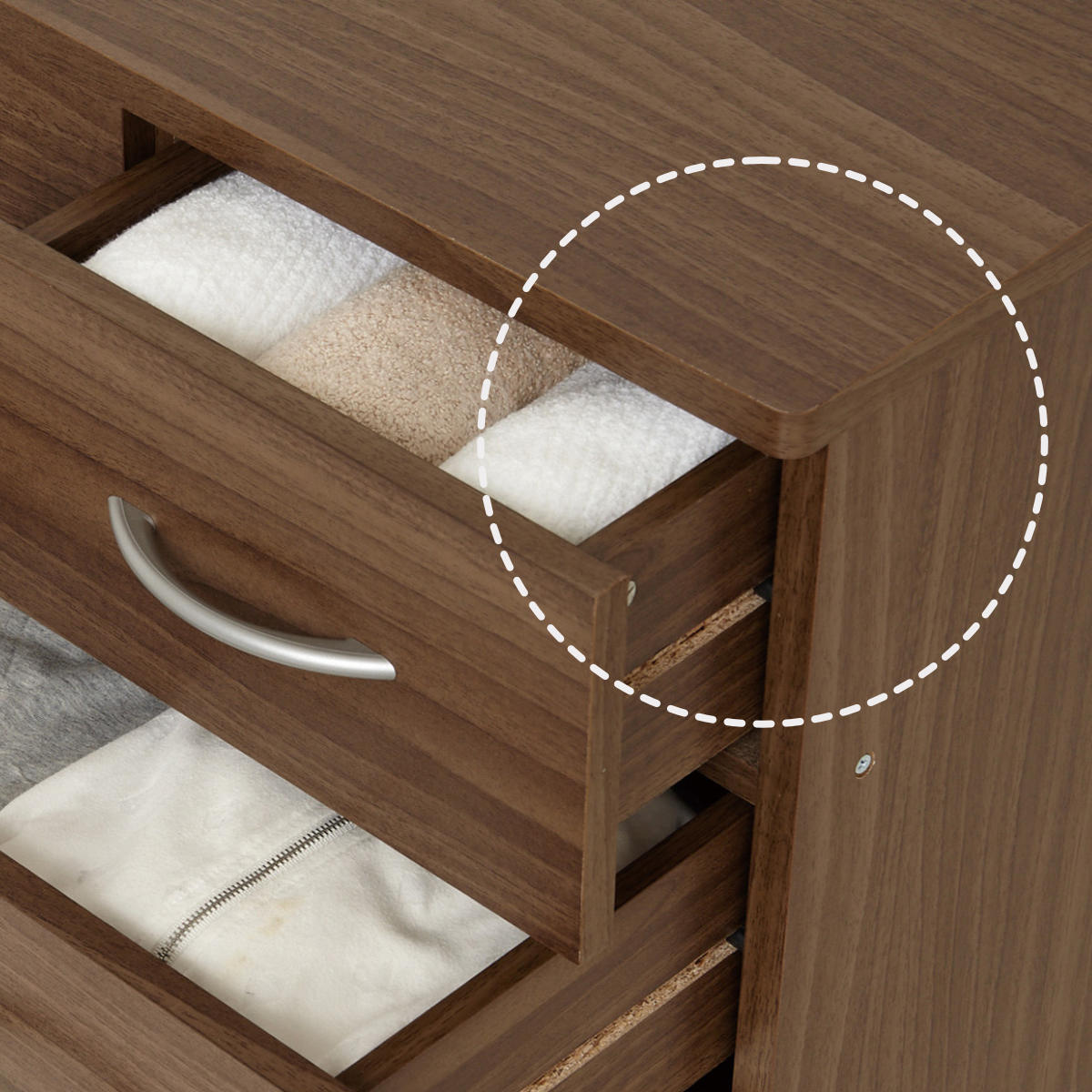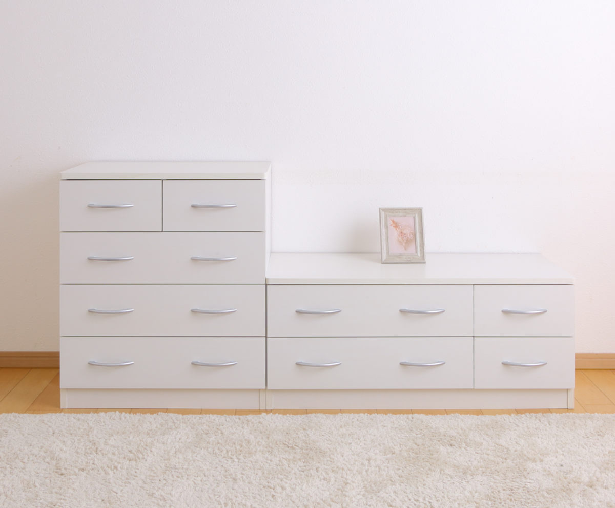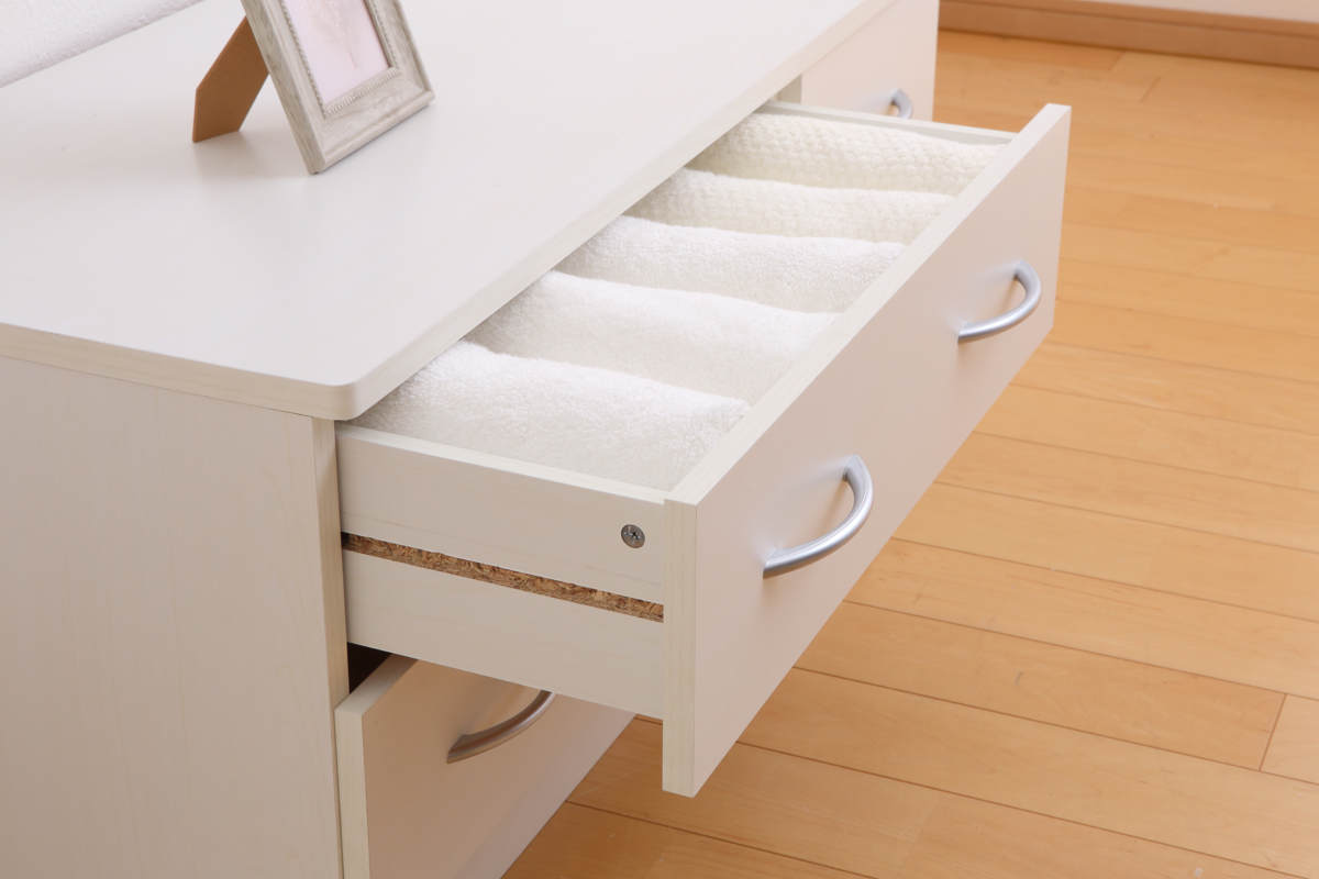 大きさの異なる引出しは衣類の収納に最適。小さめの引出しは、タオルや靴下など小物の整理にぴったりです。大きめの引出しには衣類を用途や季節ごとに分けて収納していただけます。ストッパー付きなので、引き出しすぎてしまっても抜け落ちの心配がありません。