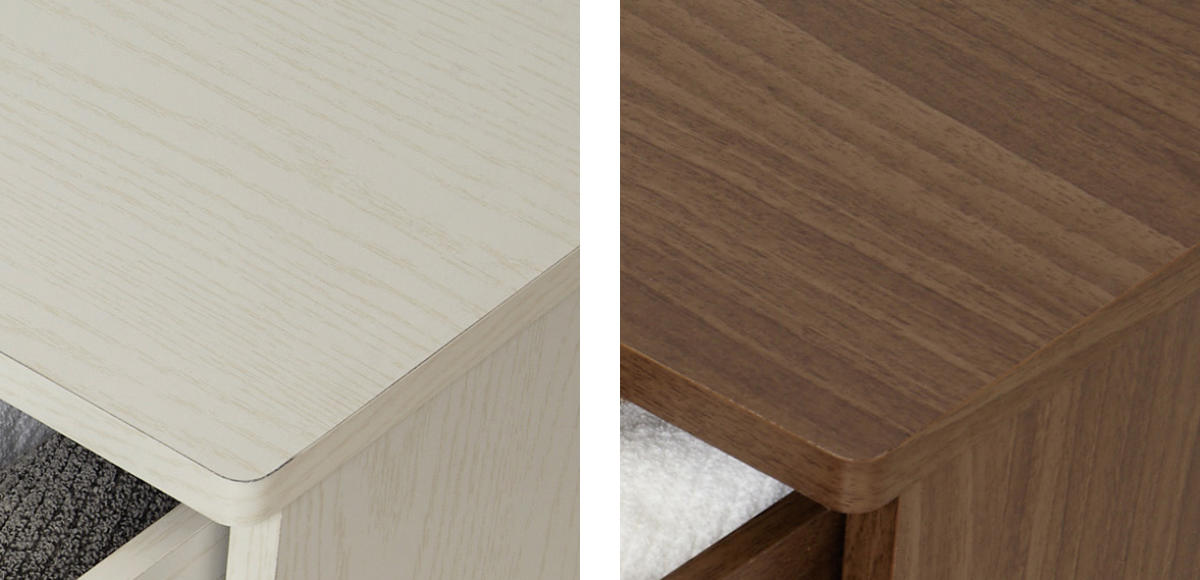 天板の角を丸く加工しています。万が一ぶつけてしまっても怪我をしにくい優しい仕様で、小さなお子さまがおられるご家庭でも安心です。