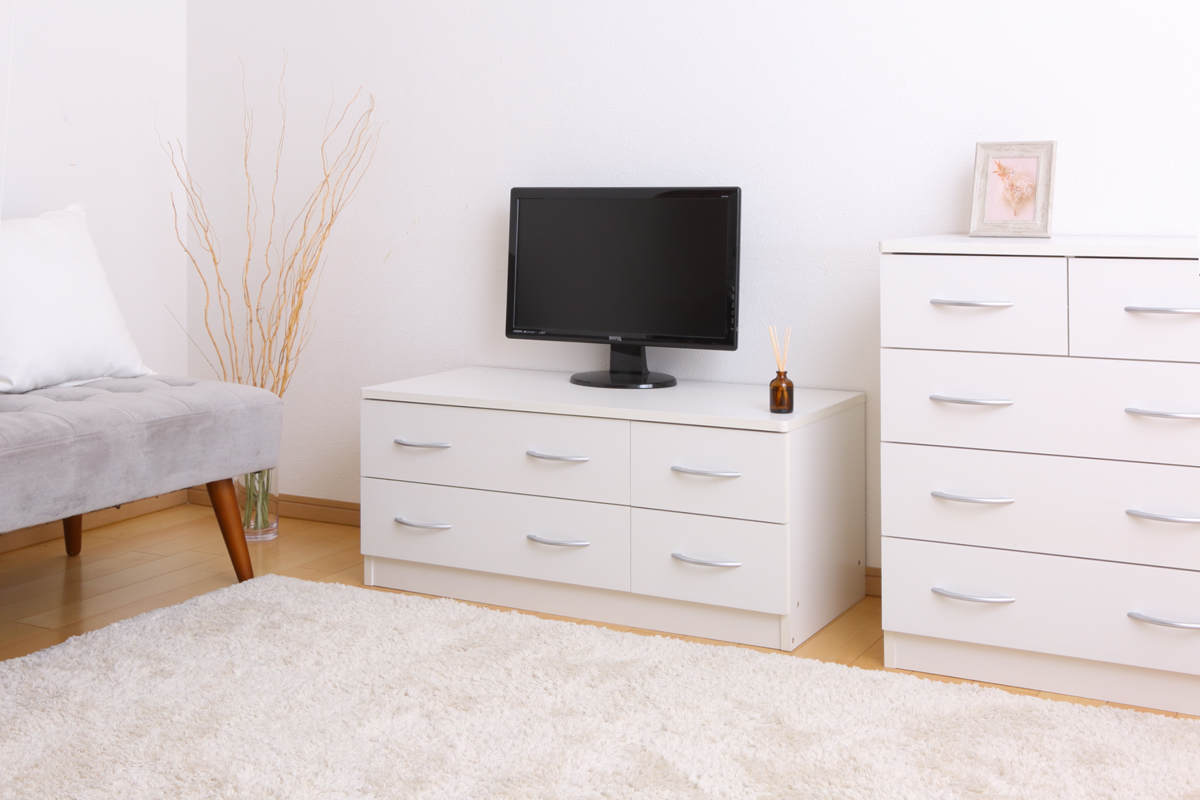 幅89.5cmで、テレビ台としてもお使いいただけます。テレビ台と衣類の収納をまとめられるので省スペースです。