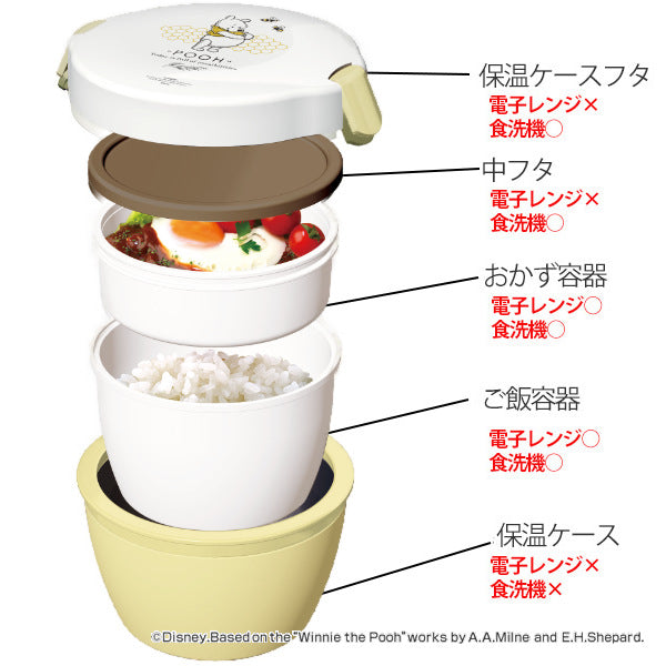 プーさんのデザインが可愛い保温ランチボックスです。中容器とご飯容器はレンジ対応なので食べる直前に温めてさらにホカホカなランチが楽しめます。保温ケース以外は食洗機対応なのでお手入れも楽ちんです。ご飯はお茶碗約1.5杯分入ります。