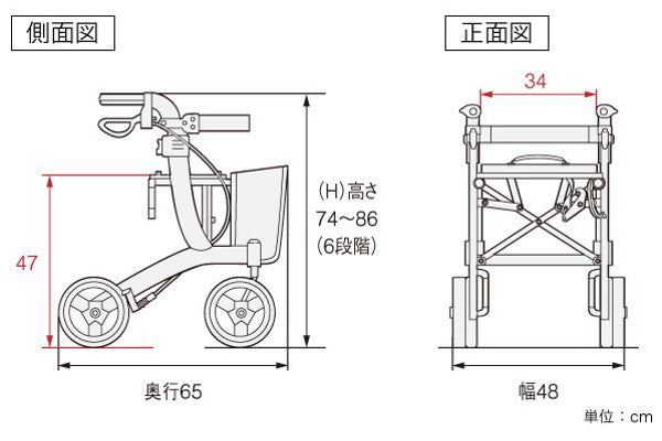歩行車 リトルターン ハイタイプ コンパクト 折りたたみ 高さ調整