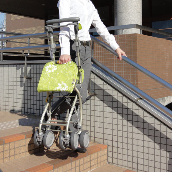 外出時に歩行補助が必要な方におすすめのシルバーカーです。片手で簡単に折りたためます。