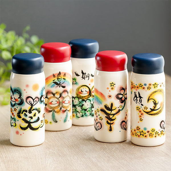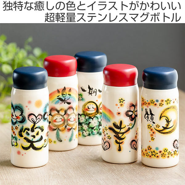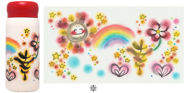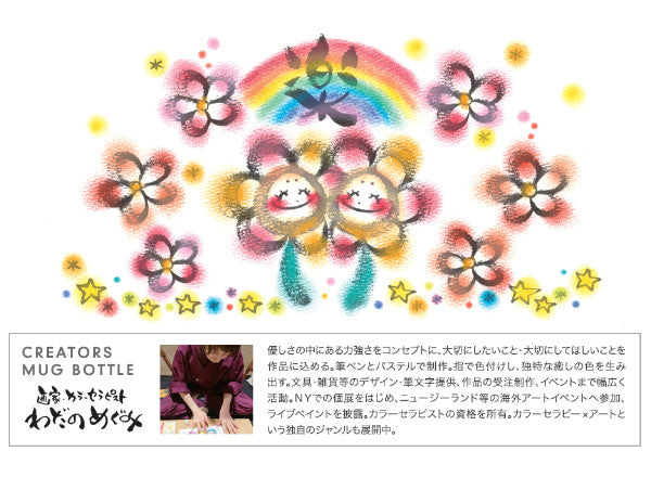 画家・カラーセラピスト「わだのめぐみ」デザインのマグボトルです。独特な癒しの色とイラストがほっこりするデザインで、贈り物にもぴったりです。重さ約110gと超軽量で持ち歩きに最適です。保温・保冷どちらもしっかり温度をキープできる真空断熱構造なので、年間通じてお使いいただけます。蓋は手のひらにフィットしスムーズに開閉できます。