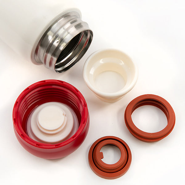 | 材質 | 内びん、肩部:ステンレス鋼 胴部:ステンレス鋼(アクリル樹脂塗装) せん:ポリプロピレン(発泡スチロール内蔵) 飲み口:ポリプロピレン パッキン:シリコーン |