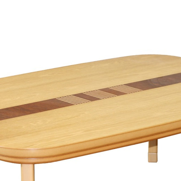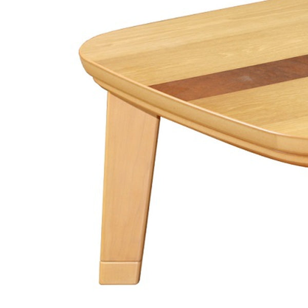 天然木ならではの綺麗な木目の家具調こたつです。オークとマホガニーの二種類の突板を使用している真ん中のラインが印象的なデザインです。優しく明るい色合いなので、和室はもちろん、洋室にもお使いいただけます。
