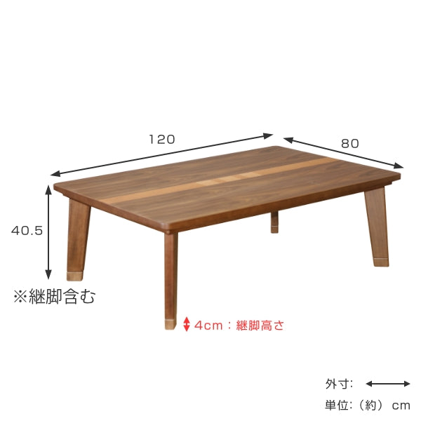 こたつ 幅120cm コタツ テーブル 机 木製 高さ調整 継脚 家具調こたつ 長方形 四角