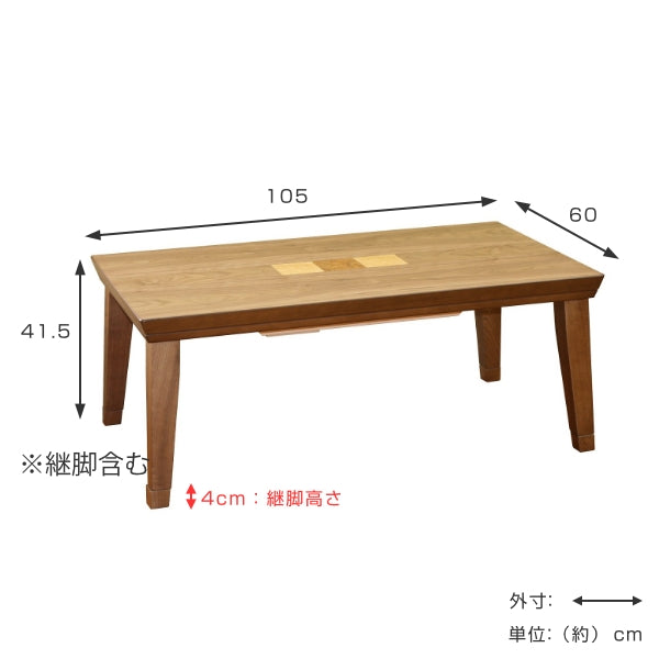こたつ 幅105cm コタツ テーブル 机 木製 高さ調整 継脚 家具調こたつ 長方形 四角