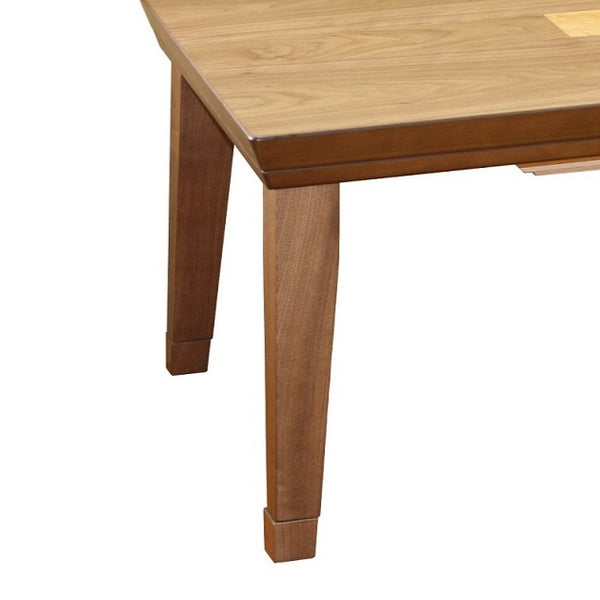 天然木ならではの綺麗な木目の家具調こたつです。天板中心に別の木材をはめ込んだデザインが印象的です。明るく優しい色合いなので、和室はもちろん、洋室にもお使いいただけます。また、小さなスペースにも設置しやすいサイズです。