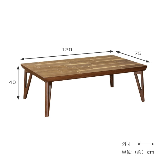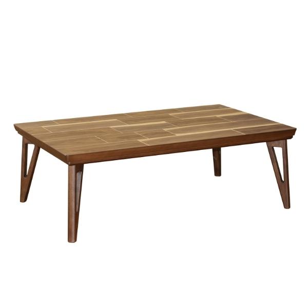ランダムに継ぎ合わせた天板が目を引く家具調こたつ
