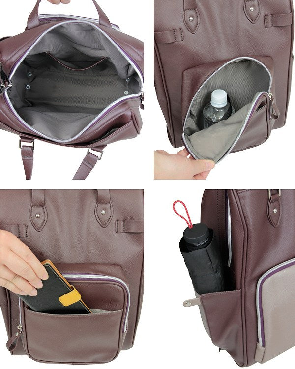 バッグの両面には収納ポケットが付いています。傘や携帯などの小物類を仕分けて収納しておくことができます。