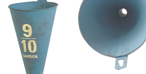 ターコイズブルーが印象的なブリキの漏斗