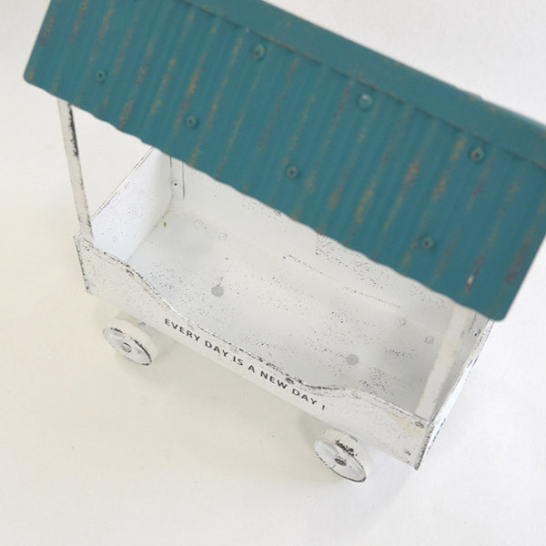 BOXの部分はシンナー缶をリサイクルしています。フラットバーでフチを囲っているのでしっかりとした作りになっています。車輪は職人によって丁寧に溶接されており、飾りではなく回転します。職人の細やかな手作業と、こだわりの詰まったアイテムです。