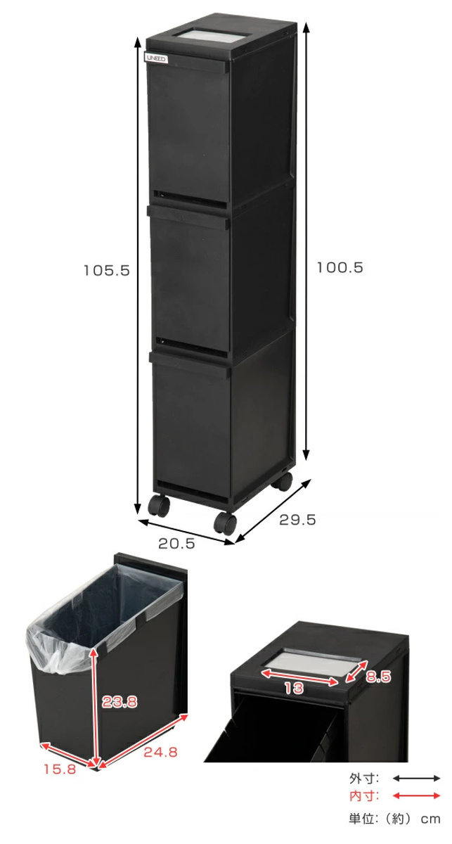 ゴミ箱 分別 30L 3段 ユニード スリムペール