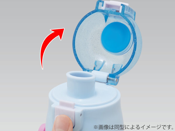 水筒の蓋はボタンを押すだけで開けることができるワンタッチ式です。飲み終わったら蓋をカチッと閉めるだけなので、小さなお子様でも簡単に開閉できます。
