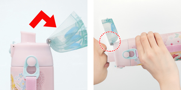 蓋が固定できるキャップロック設計。飲んでいる時に蓋が邪魔にならず、片手で素早くスムーズに水分補給できます。