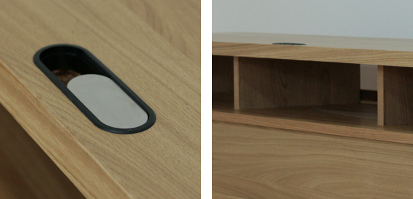 | 材質 | 表面材:ホワイトオーク無垢 天板・側板:ホワイトオーク突板貼り 塗装:ウレタン塗装 引出し:桐箱組(あり組) |