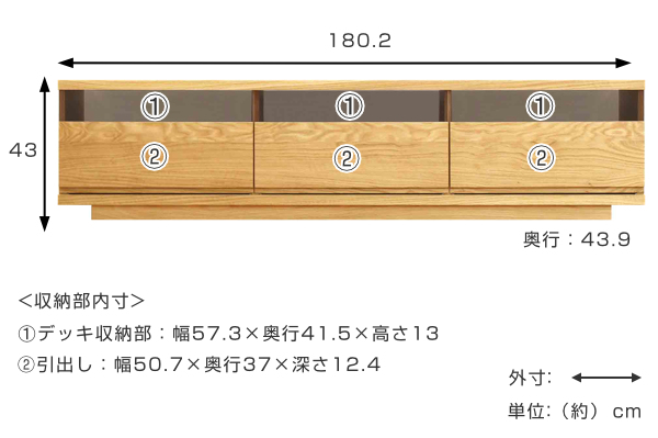 | サイズ | 約 幅180.2×奥行43.9×高さ43(cm) |