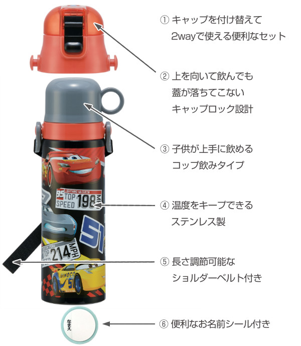●直飲みとコップ、2通りの飲み方に対応したカーズのステンレスボトルです。