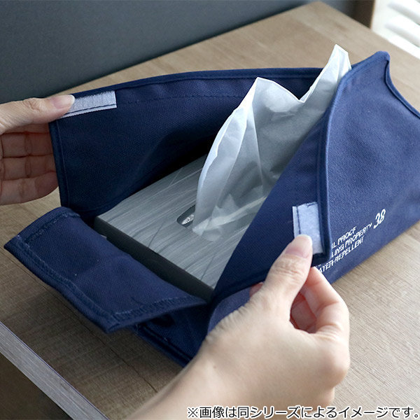 面ファスナーを外してカバーを開き、ティッシュボックスをセットするだけで、お洒落なインテリアになります。