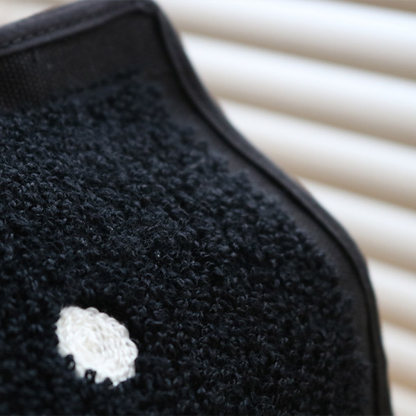 ミッフィーフェイスデザインの素材は、ふわっとした弾力で柔らかく、気持ちのよい肌触りが魅力のパイル地です。表と裏は異素材なので、独特の雰囲気をお楽しみいただけます。