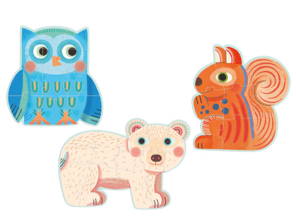 初めての紙パズルにぴったりなプリモパズルです。ふくろう・りす・くまの愛嬌ある表情がかわいいデザインです。それぞれのピースは大きく作られているので、完成形のイメージがしやすく、お子様が飲み込んでしまう心配もありません。