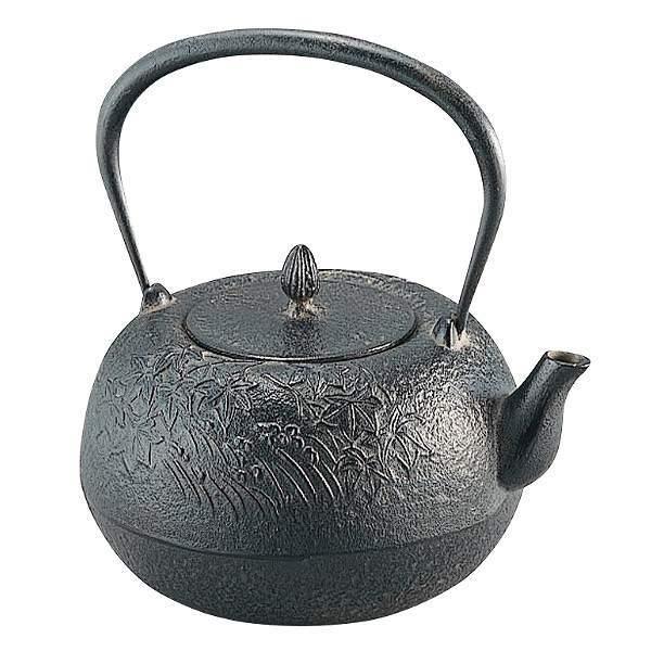 ●側面にもみじ柄がデザインされた南部鉄瓶です。