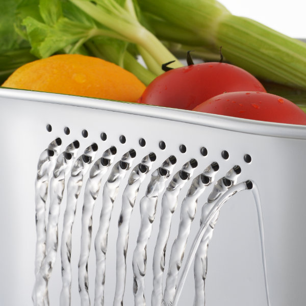 側面には流水穴がついているので野菜などを洗った際に野菜が流れ出しません。