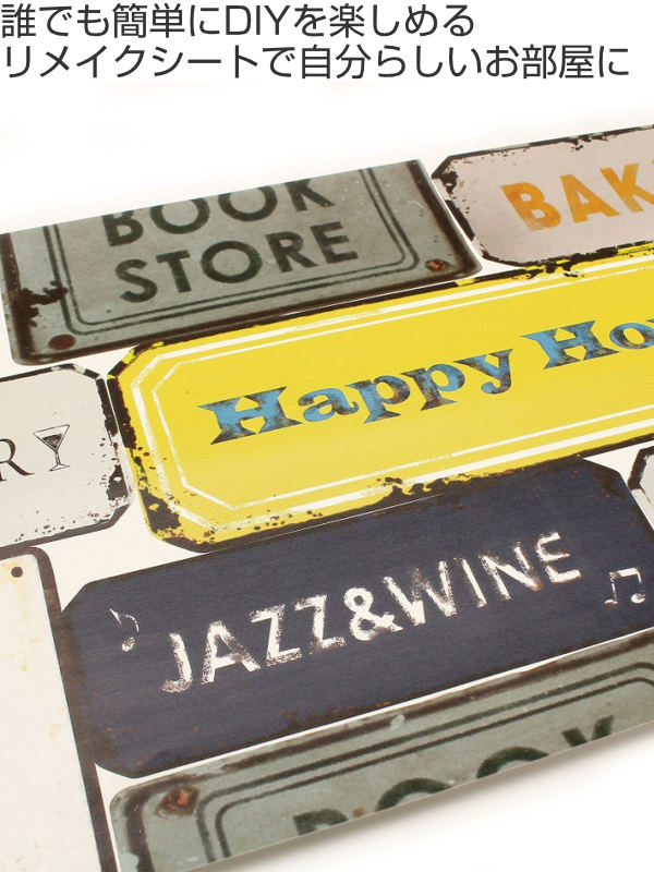ビンテージプレート柄のリメイクシートです。レトロなプレートを集めた柄になっています。お部屋やインテリアのアクセントとして貼っても、お好きなプレートを切り取って貼っても、オシャレな仕上がりになります。