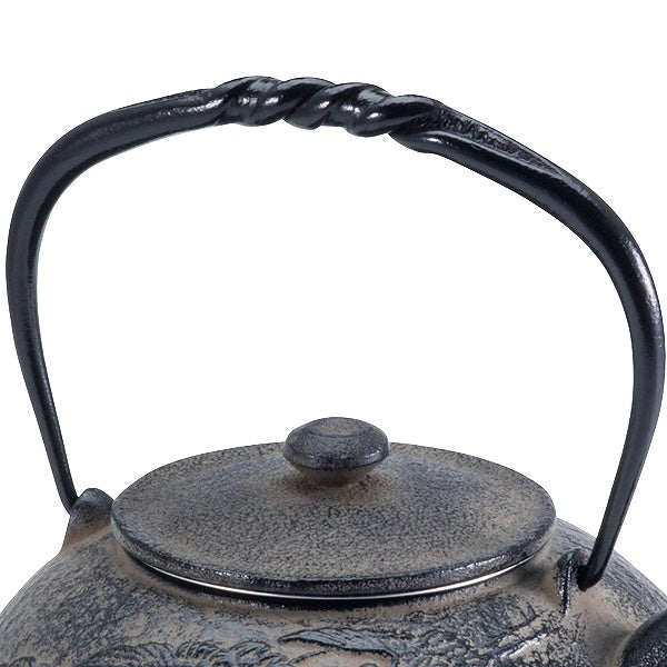 ●縁起の良い「松」と「鶴」を本体にデザインした南部鉄急須です。