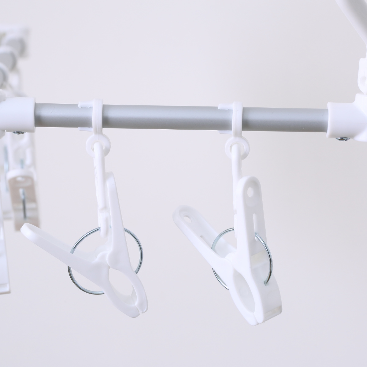 フレームを伸縮させて幅を自由に変えられるピンチハンガーです。最長約206cmまで広げられ、縮めればコンパクトに収納可能です。毛布やシーツなどの大きな洗濯物も、限られたスペースで効率よく干せます。