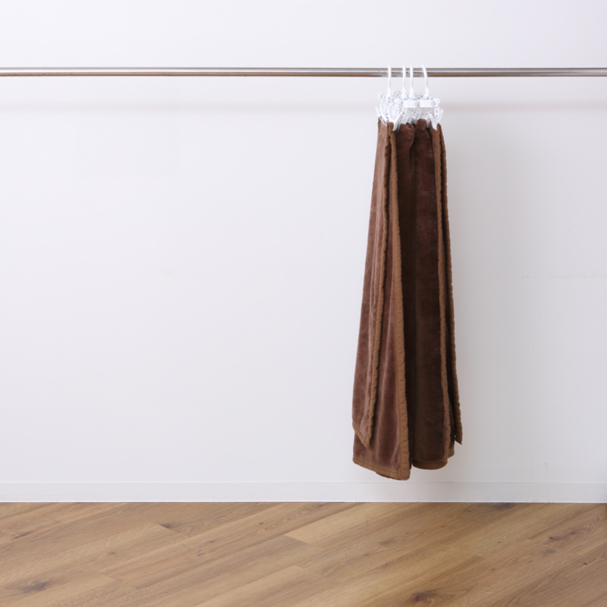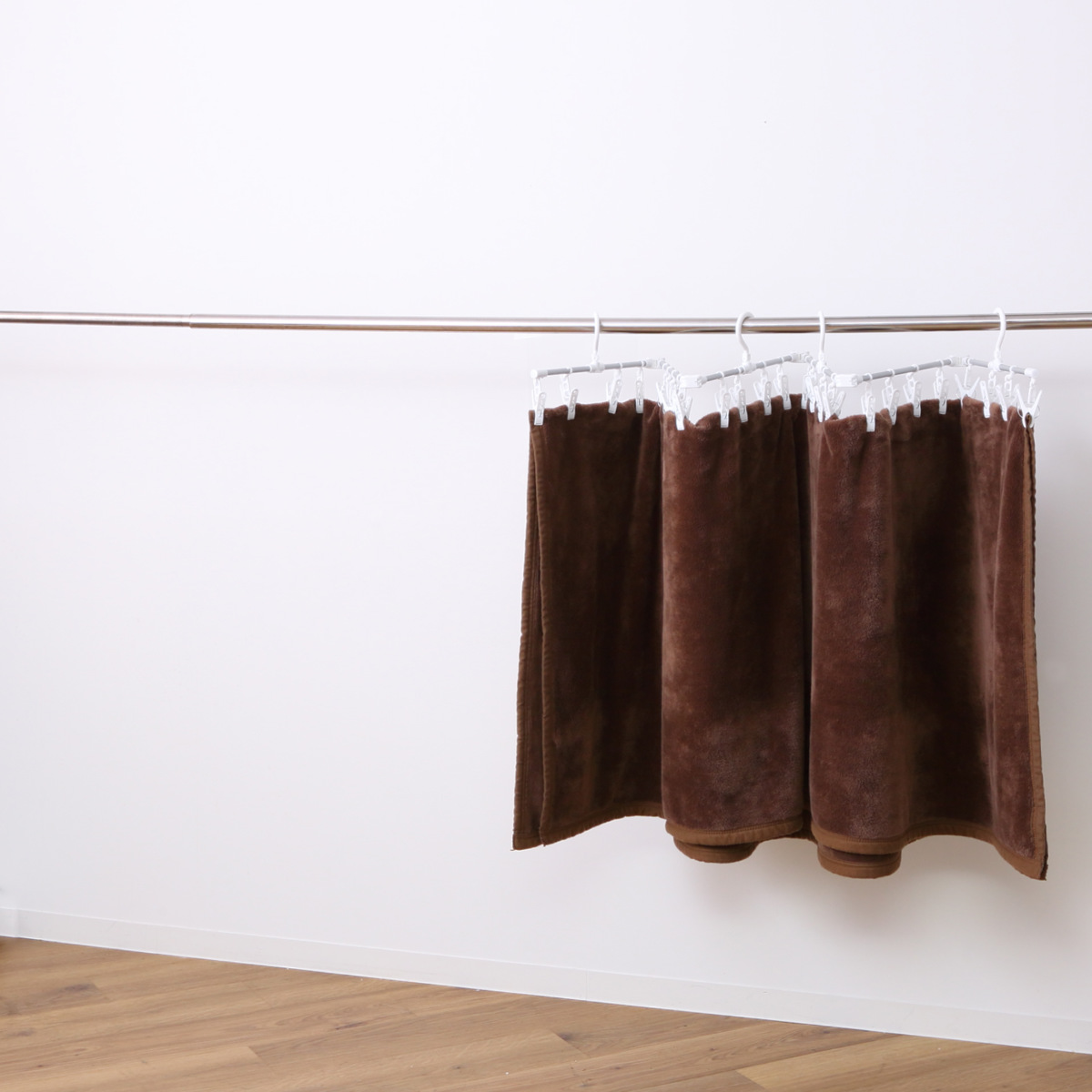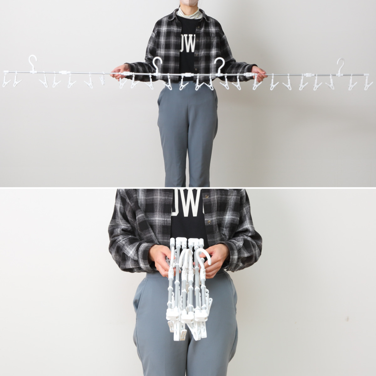 干す場所に困りがちな大物も、幅調整するだけで無理なく広げて干せます。乾いた後は折りたたんで省スペースに収納できます。