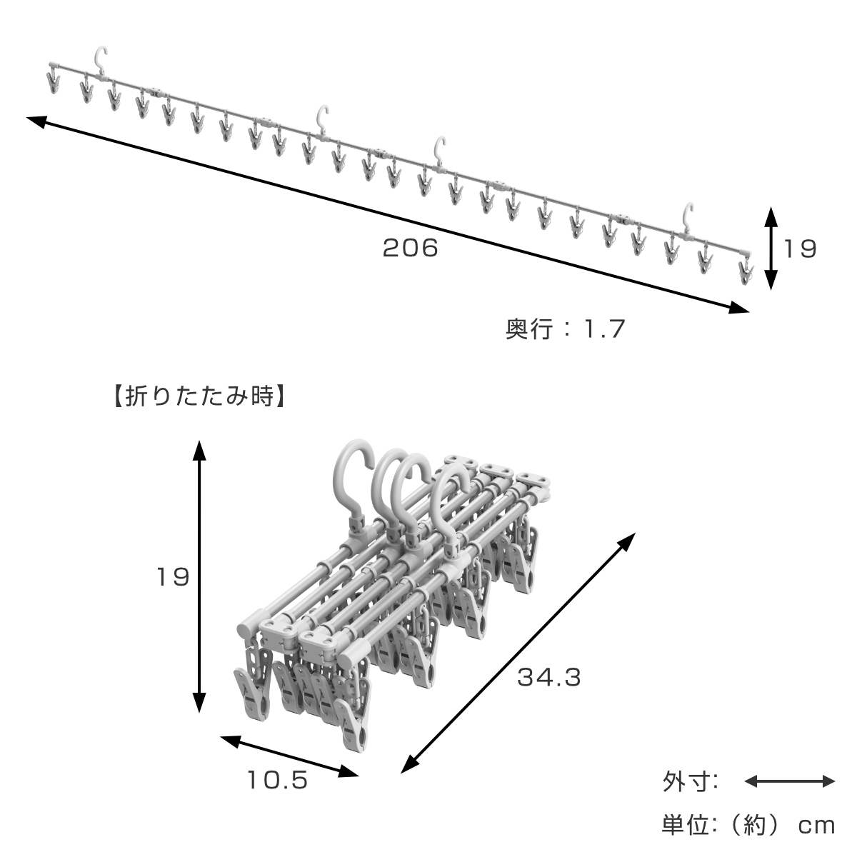 折りたたむと幅約10.5cmとスリムになり、収納時も場所をとりません。竿に掛けたままフックを固定すれば、片手で簡単に伸ばしてすぐに使えます。