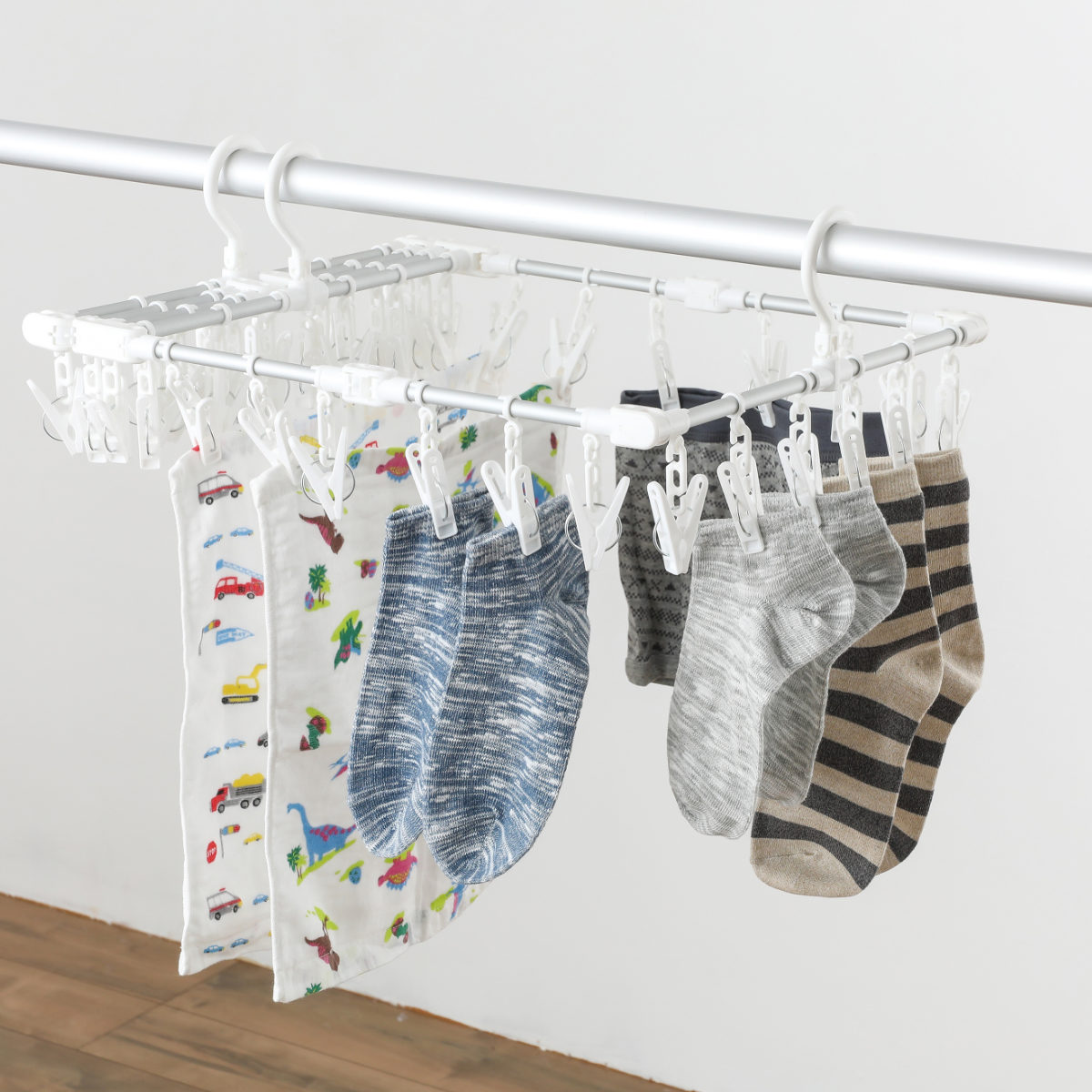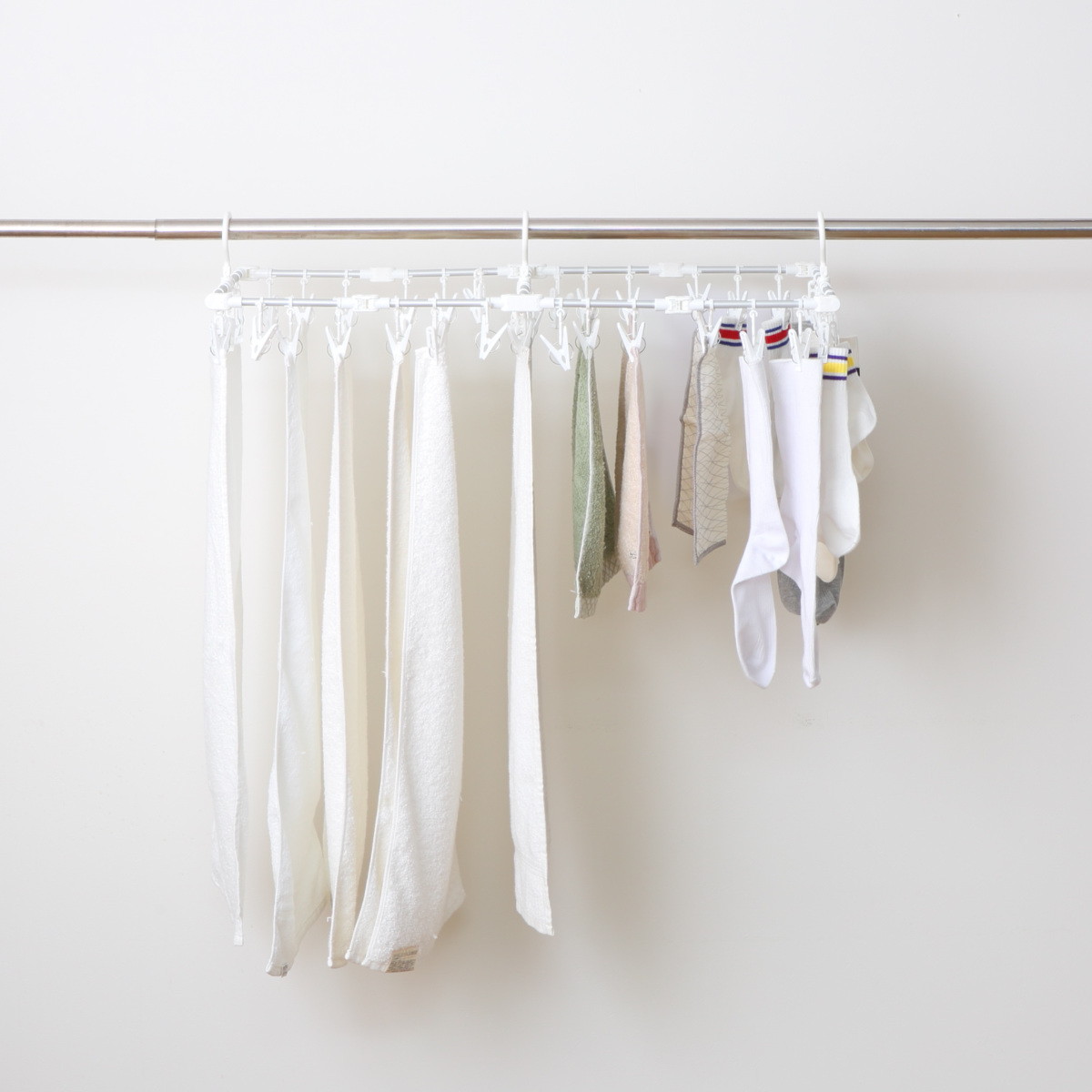 フレームを伸縮させて幅を自由に変えられる角ハンガーです。干すスペースや洗濯物の量に合わせて調節でき、狭い場所でも効率よく無駄なく使えます。使わないときはコンパクトに折りたたんで収納でき、毎日の洗濯をよりスムーズにサポートします。