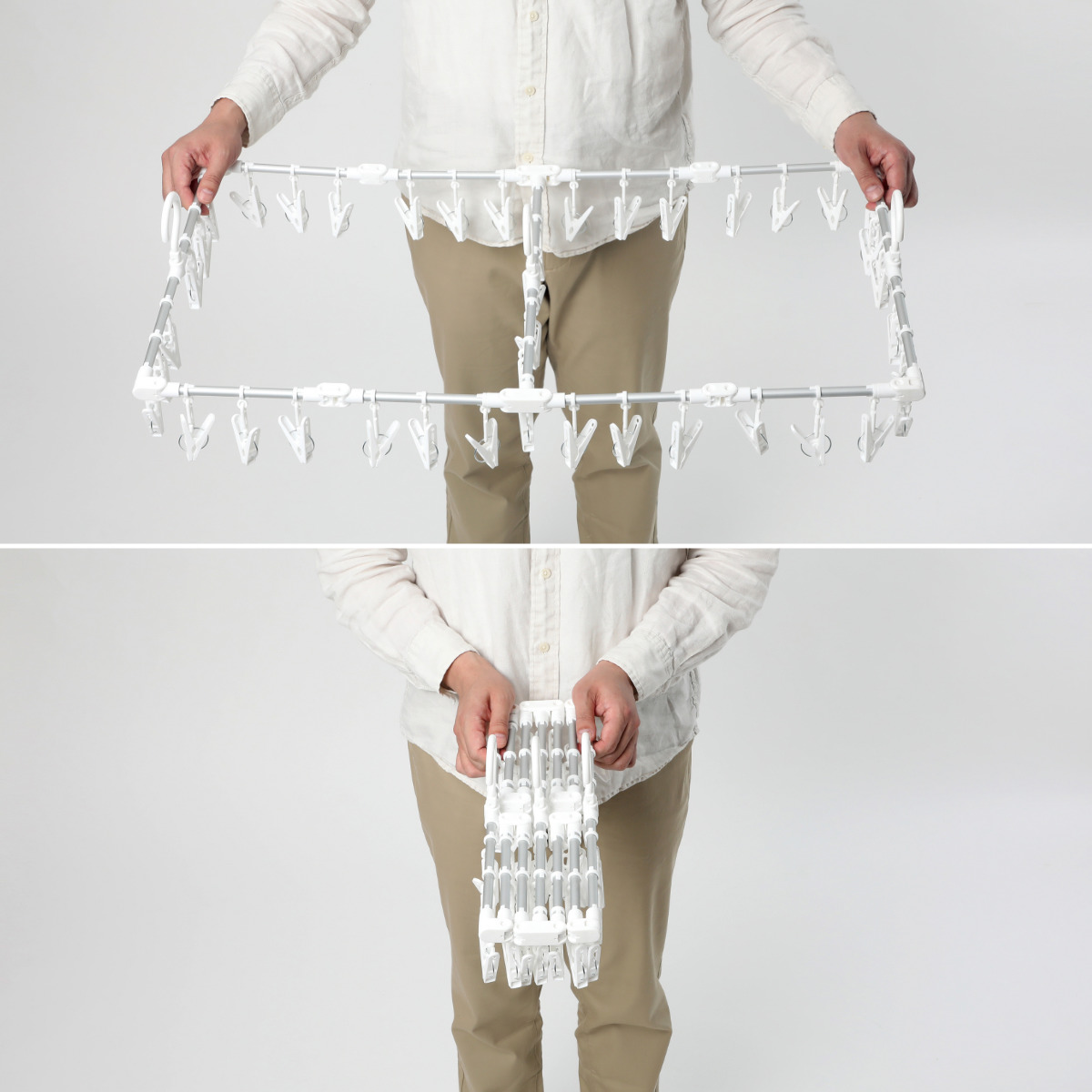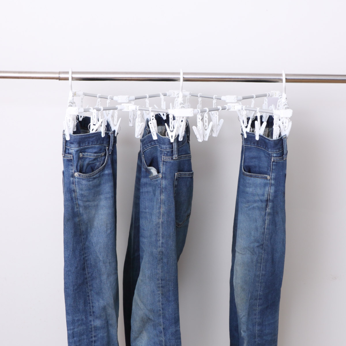 フレームの形を変えて広げることで、ジーンズや厚手の衣類など乾きにくい洗濯物も空気が通りやすく、乾きやすくなります。